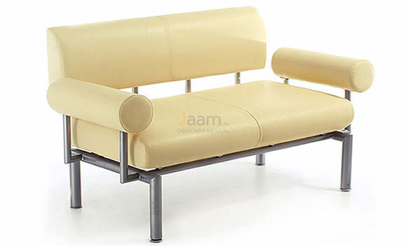 Если классическая форма офисных диванов приелась, обратите внимание на эту модель. Она имеет правильную симметричную форму, в которой оригинальным акцентом выступают цилиндрические подлокотники. Они располагаются отдельно от сидения и прикреплены к нему металлическим каркасом, как и спинка дивана. Из-за того, что диван имеет проемы между составляющими частями, конструкция визуально облегчается и смотрится аккуратно. Палитра материалов, которая насчитывает немного менее 30 оттенков, позволит подобрать модель с наиболее подходящим цветовым вариантом отделки.