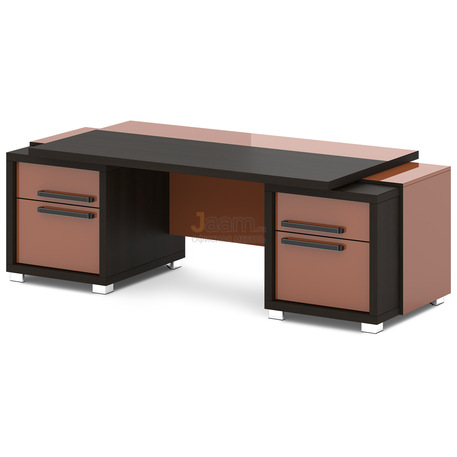 Стол руководителя L-119 №18296 - кромка: пвх, покрытие: ламинат, стекло: бронза сатинат в алюминиевом профиле, цвет профиля - коньяк.ШxГxВ | 227х100х75 |