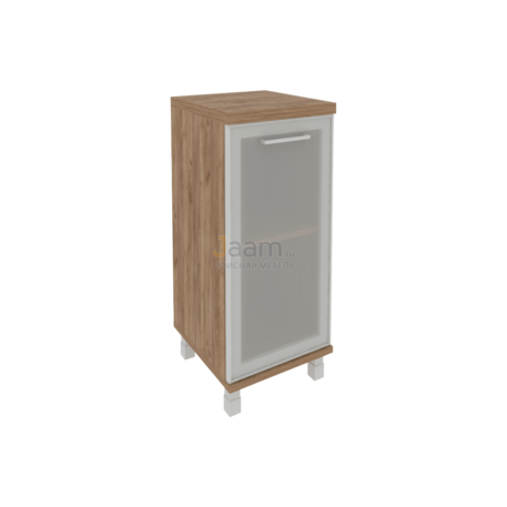 Офисный шкаф низкий узкий левый KSU-3.2R №27116 - столешница: дсп 36 мм, кромка: пвх, покрытие: ламинат, стекло: матовое.ШxГxВ | 40х43х96 |