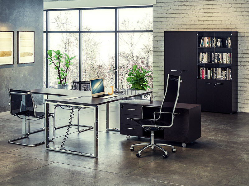 Стол руководителя L-180 RO180 №30745 - столешница: дсп 38 мм, кромка: абс, покрытие: меламин, стекло: прозрачное.ШxГxВ | 180x90x77 |