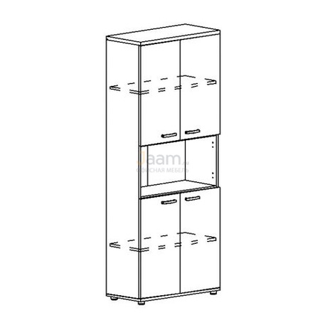 Шкаф для документов 4-дверный с открытой нишей 9374 БП №33296 - столешница: дсп 25 мм, кромка: пвх, покрытие: ламинат, стекло: прозрачное.ШxГxВ | 78x36.4x193 |
