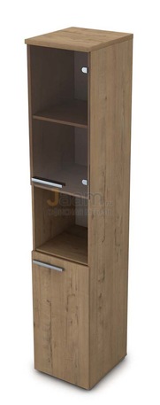 Офисный шкаф высокий узкий 9П.005.13 №36305 - столешница: лдсп 25 мм, кромка: пвх, стекло: матовое.ШxГxВ | 40х45х204 |