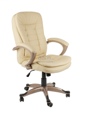 Кресло для руководителя RT-202 бежевое №38509 - механизм качания без фиксации, регулировка жесткости качания по весу сидящего, ограничения по весу: 120 кг, основание: пластик, каркас: немонолитный, производитель: китай, подлокотники, регулировка по высоте, резиновые колеса для паркета, в наличии в Минеральных водах.