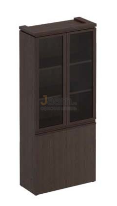 Офисный шкаф высокий МК 343 №39916 - столешница: дсп 52 мм, кромка: массив, покрытие: лаковое, стекло: прозрачное.ШxГxВ | 90x40x211 |