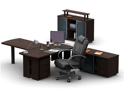 Комплект "Директор" №7159 - столешница: дсп 38 мм, кромка: абс, покрытие: ламинат, стекло: тонированное.ШxГxВ |