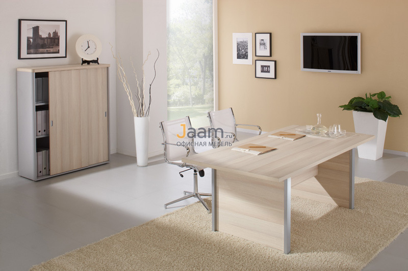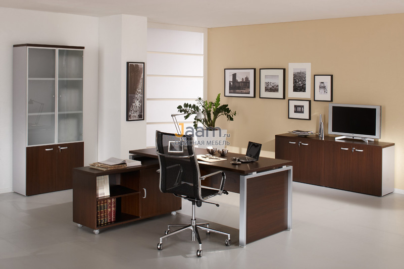 Индивидуальную особенность руководителя компании всегда выгодно сумеет передать изящный и неповторимый в своей красоте кабинет руководителя Flash. Ведь только наличие данной мебели дает возможность со вкусом и в изобретательном стиле оформить необычайный интерьер помещения. Мебель Flash обладает стильными и диаметрально противоположным сочетанием цветовых оттенков, тут присутствуют изумительность, элегантность, изысканность, а также забавные вставки, изготовленные из тонированного стекла на столешницах и тумбах, имеются привлекательные навесные шкафчики. Очень подходит для начальника женского пола.