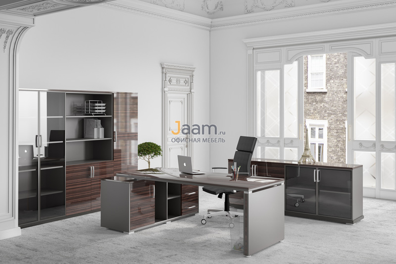 Кабинет руководителя Venezia - столешница: дсп 18 мм, кромка: abs 2 мм, стекло: закаленное стекло цвета "графит". Столы (10)