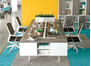 Мебель для персонала серии AIR ZONE выдержана в причудливом дизайне, объединившем два стилевых направления – современный минимализм и ретро 70-х годов. Предметам свойственны четкие очертания, строгие прямые линии и оригинальность двухцветной палитры. Столешницы столов, тумб, дверцы шкафов и лицевые панели выдвижных ящиков выполнены в контрастном цвете. Благодаря лаконичному дизайну и функциональности эргономичная мебель отлично впишется в интерьер пространства, настроив персонал компании на рабочий лад.