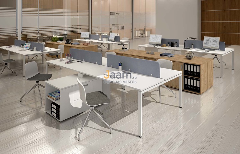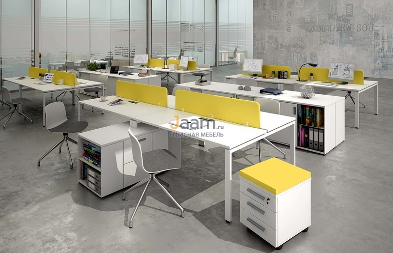 Мебель для персонала Gloss бенч-системы - столешница: лдсп 25 мм, кромка: пвх. Линейные бенч-системы опора П-образной формы (57)